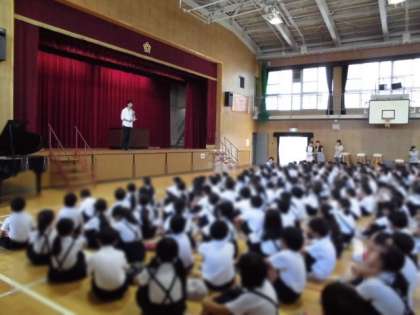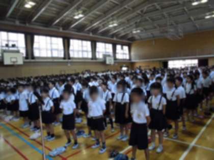 始業式以来、久しぶりに講堂に全校児童が集まりました。