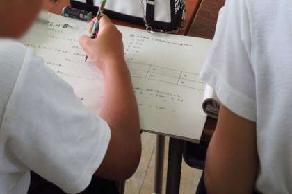 分からない問題は、先生にヒントや解き方を教えてもらったり、教室にある国語辞典で調べたりしていました。
