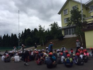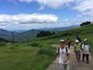いよいよ登山出発!!だんだん晴れてきました。お天気は曇りなので、涼しいです。行く前に、虫の機嫌が悪いということを聞き、急いで虫除けスプレーをしている人がたくさんいました。