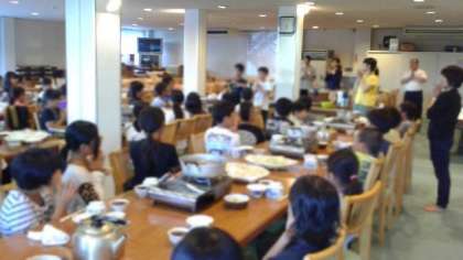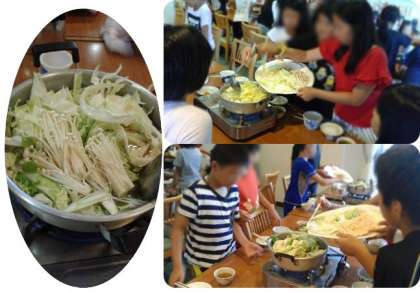 晩御飯です。班の準備もスムーズです。相変わらずナベが出来上がる前に、ご飯のおかわりの列ができます…。