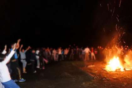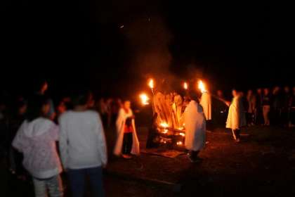 火の神、火の子による点火やたくさんのレクリエーションを元気よく行っていました。 みんなで楽しく歌ったり踊ったりして盛り上がりました。