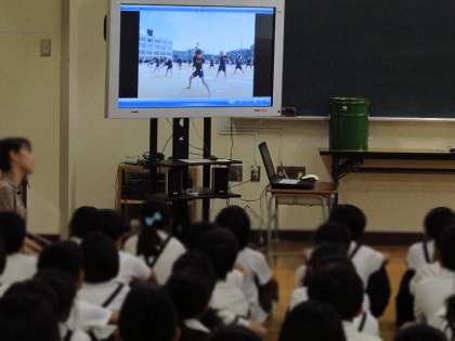 今日は、動画を見て、どんな曲で、どんな踊りで、みんなで踊るとどんな雰囲気なのか、など、これから始まるソーラン節の練習の大まかなイメージをつかみました。
