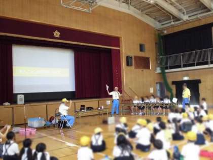 3時間目のPTA地域懇談会では、平野CAT隊の皆さんに来ていただき、「安全講習会」を開きました。
