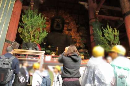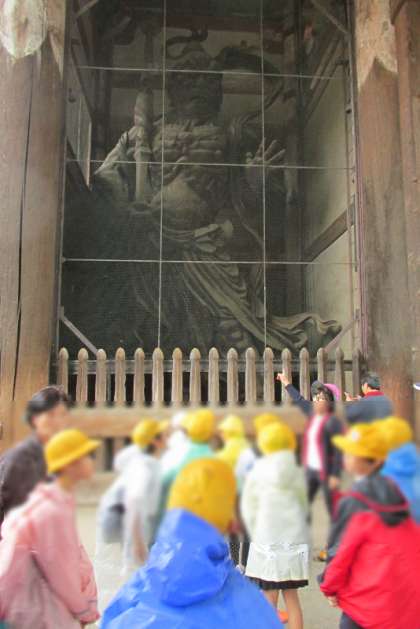 世界遺産でもある東大寺では、南大門の金剛力士像や大きな大仏像や木造の観音像など国宝・重要文化財を見学して、歴史を感じ圧倒されていました。