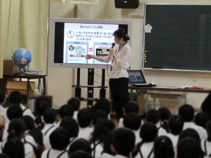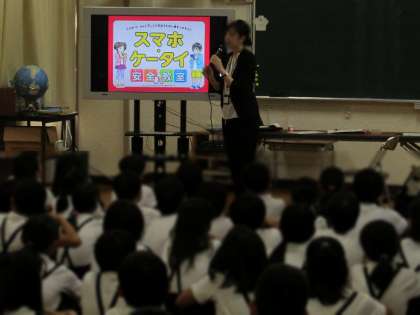 NTTの方に来ていただいて「スマホ・ケータイ安全教室」を開いていただきました。