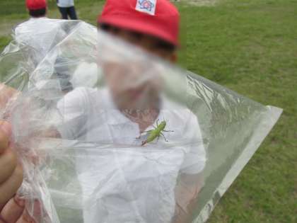 バッタ公園では虫取りに夢中になり、虫をじかに触っていました。