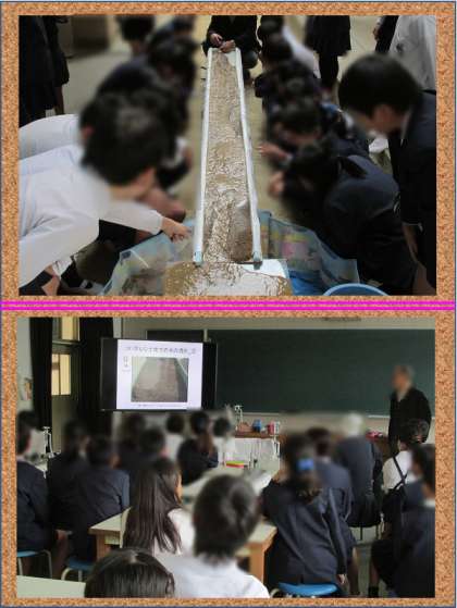 京都技術士会の方に来ていただいて、理科の「流れる水のはたらき」についての特別授業をしていただきました。