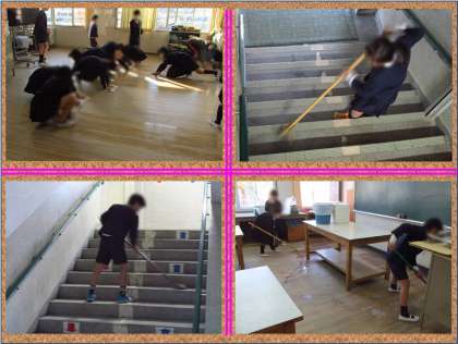 教室や廊下、階段は、ほうき掃除の後で雑きんがけをしています。