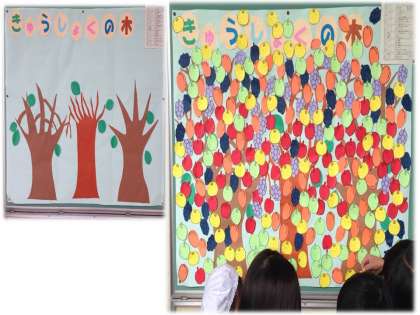 1週間できゅうしょくの木はくだものでいっぱいになりました。