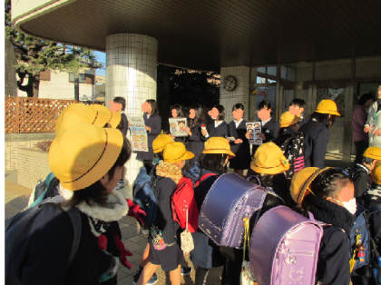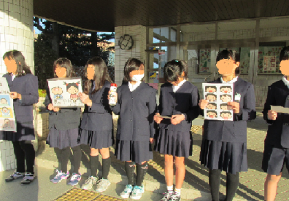 健康委員会の子どもたちが、朝、正門に立ち呼びかけています。