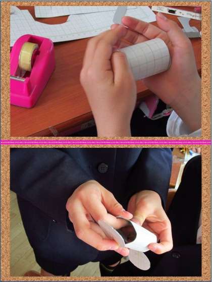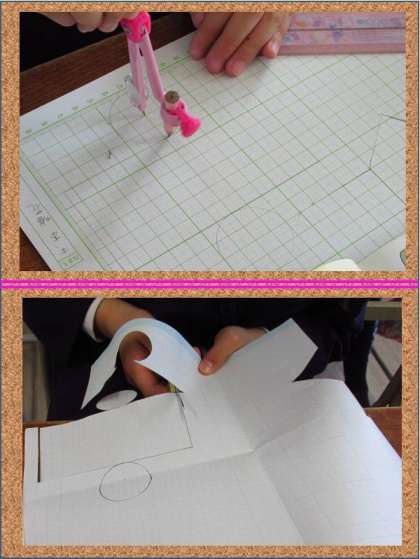 今日は円柱の展開図から側面の横の長さが何cmになるのかを考えて求め、実際に展開図をかいて切り抜き円柱ができるか確かめていました。