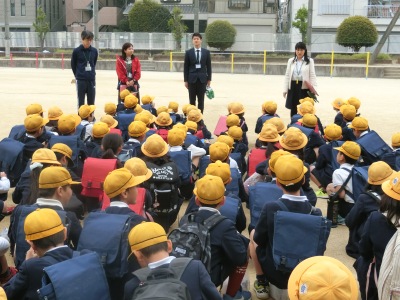 着任式の後、全員で校歌を斉唱【写真中】し、「1学期始業式」を行いました。校長先生からは、「みんなで力を合わせて、楽しいよい学校にしよう。一年の目標に向かって一日一日を大切にしよう。」というお話がありました。その後、担任の先生方の発表があり、4年生【写真右】は運動場に集合をして、学年主任からクラス分けの発表がありました。