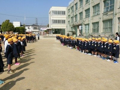 4月10日(火)9時、入学したばかりの89名の1年生は、2年生から6年生の在校生444名との「対面式」を行いました。あたたかい拍手に迎えられて、長吉小学校の全児童が初めて顔を合わせました。