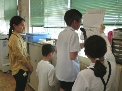 給食委員会の児童は、毎日職員室から給食について放送をしています。