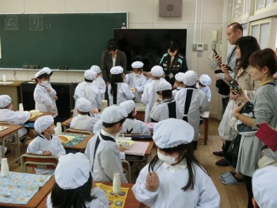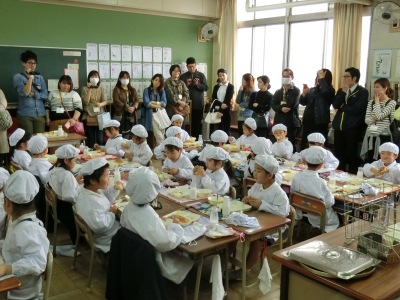 1年生は「給食参観」で、みんなで協力して準備している様子をみていただきました。自分たちだけで給食の準備や片づけをするようになって、まだ10日ほどですが、6年生に教えてもらったとおり、上手にできるようになりました。