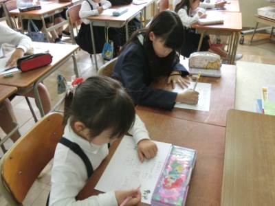 各グループでペアを決めてから、リーダーと副リーダーを決めました。その後、自己紹介カードを作成して、お互いに自己紹介をしました。1年生と6年生【写真右】は、講堂で児童集会の並び方の練習もしました。仲間の輪を広げ、学校生活をより楽しいものにしていきましょう。