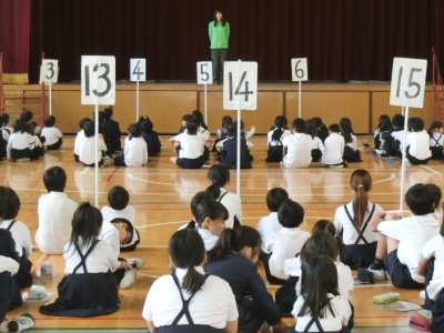 5月10日(木)2限、兄弟学年が各教室に集まり、「なかよし学年」の班編成を行いました。1年と6年はきりん、3年と5年はぞう、2年と4年はりすグループになります。