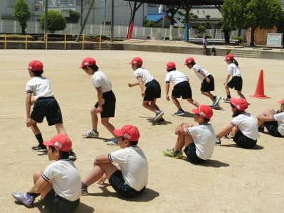 「20mシャトルラン」(往復持久走)は、「ドレミファソラシド」の電子音が終わるまでに、20mを走ります。レベルが上がるごとに、音の間隔が短くなっていきます。走るグループと測定グループに分かれて行いました。「がんばれ!」という応援の声に後押しされ、去年の自己記録を更新するまで頑張りました。結果は今後の体育の授業に活かしていきます。