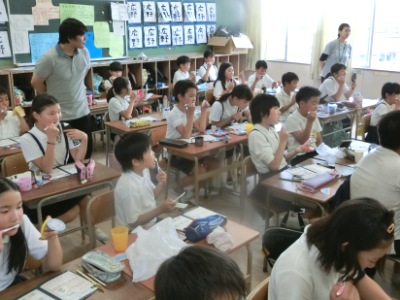 6月7日(木)5限、5年2組の30名は、学校歯科医の先生にも来ていただいて「第75回全国小学生歯みがき大会」に参加しました。日本だけでなくアジアの小学生約21万人が参加します。教室でDVDを見ながら、歯と口の健康について、実習を通して楽しく学ぶ大会です。