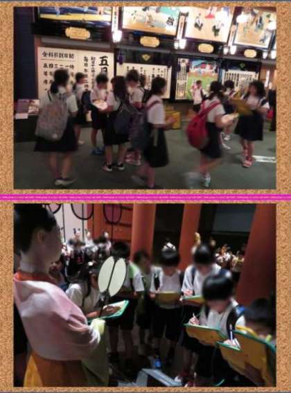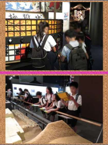 お昼のお弁当タイムをはさんで、最後に「大阪歴史博物館」へ行きました。ここでもグループごとにワークシートの問題に答えていました。みんな一生懸命に答えを探していました。