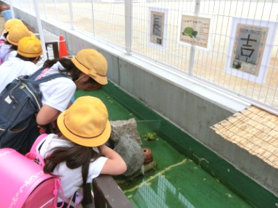 6月8日(金)放課後、サブグランド横の池に児童が集まっていました。この4月まで、校庭の飼育(鳥)小屋で飼われていた2匹の亀は、5月に新しく整備した池に、引っ越しをしました。飼育栽培委員会の皆さんや管理作業員さんが世話をしてくれています。登校時や下校時は、たくさんの児童が様子を見にきます