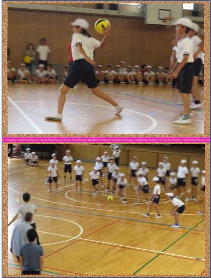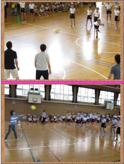 2時間目は、「ふれあいドッジボール」でした。児童VS保護者の皆さまや、男子(女子)VS保護者の皆さまの試合をしました。大人たちは、パス回しを上手くして児童を揺さぶります。児童たちは、心置きなく(?)本気でボールを投げていました。ファインプレーがあると、会場からは大きな拍手が起きていました。とっても楽しいふれあいができました。