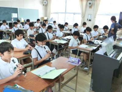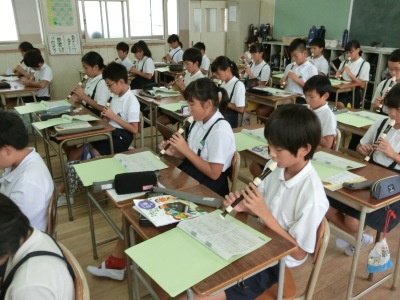 今日の授業では、リコーダーと先生のオルガンに合わせて合奏をしました。30人が一つの「音楽をつくる喜び」を感じ取っていました。こらから木琴やコンガなど、いろいろな楽器を使って合奏練習をしていきます。