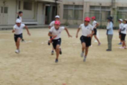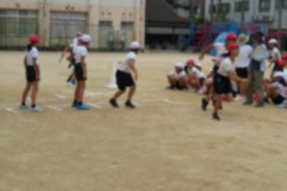 運動会の「リレー」の練習を運動場で行いました。チームが決まってから、走る順番をみんなで話し合って決めました。
