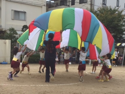 10月6日(土)、突然の豪雨のため開始時刻を30分遅らせて、長吉幼稚園の「うんどうかい」が開会しました。