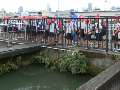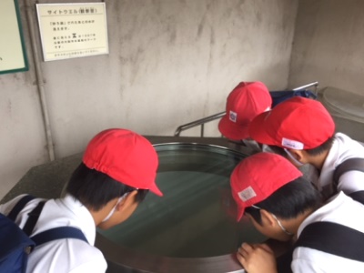 10月11日(木)、今にも雨が降り出しそうな天気の中、4年生は東淀川区の「柴島浄水場」へ社会見学に行きました。柴島浄水場は、大阪市の浄水場の中で一番古く、大正3(1914)年に誕生しました。