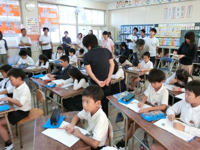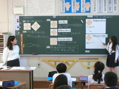 10月15日(月)5限、4年生は算数科の習熟度別・少人数学習の「研究授業」を行いました。単元は「計算のやくそくを調べよう」です。