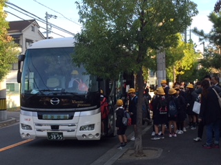 「出発式」は、運動場で行いました。校長先生からは「小学校生活最高の楽しい思い出と学びをお土産に持って帰ろう。」というお話がありました。たくさんの保護者や教職員に見送られ、バスに乗り込み、7時50分に出発しました。現在、バスは奈良県の西名阪道を走っています。修学旅行が一路平安でありますように。