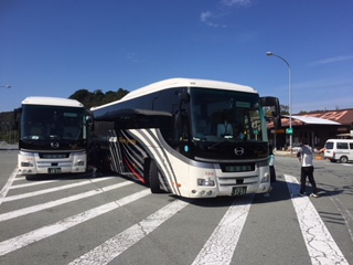 10時10分、バスは伊勢自動車道の「多気パーキング」に到着しました。2回目のトイレ休憩を済ませました。バスは10時20分に出発し、順調に最初の目的地「志摩スペイン村」に向かっています。