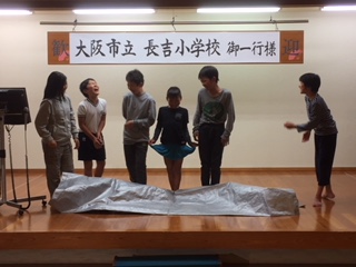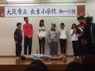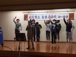 その後、20時15分から宴会場で「夜のつどい」を行いました。1組はクイズで「スカートを履いているのは誰?」など、2組はジェスチャーゲームと歌をしました。3組は劇「桃太郎殺人事件」を演じました。みんなで盛り上がった「夜のつどい」でした。