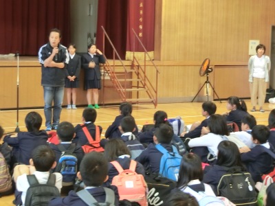 「帰校式」は体育館で行いました。参加した全員が「一生の思い出となる修学旅行」になったと思います。子どもたちは、「楽しい思い出と学び」をいっぱいお土産に持って帰ってきました。