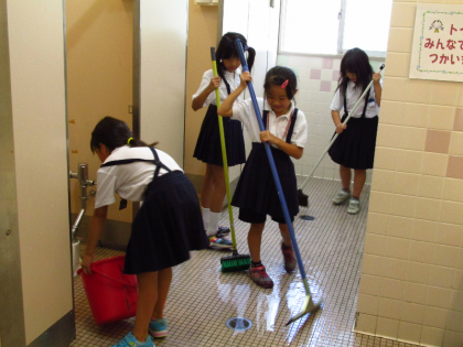 明日で1学期が終わります。なので、今日のお昼に、みんなで大掃除をしました。いつもの掃除場所を、いつもよりていねいに掃除をしていました。