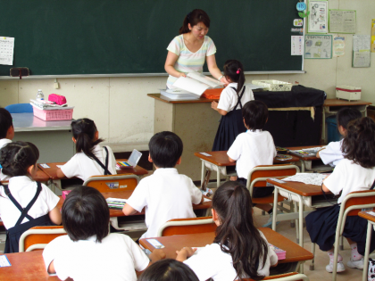 教室では、今年から新しくなった成績票を担任から受け取っていました。
