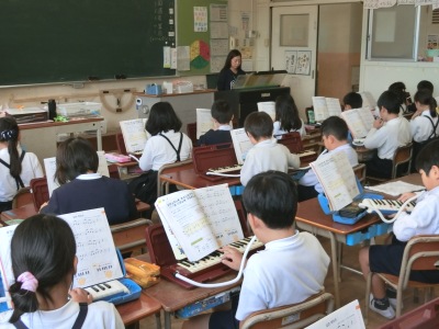 11月6日(火)3限、2年生の教室では、音楽科の授業で「鍵盤ハーモニカ」の演奏をしていました。