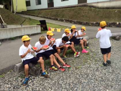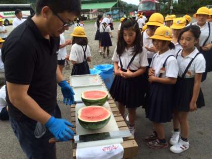 高原で食べるスイカは、きっとおいしいのでしょうね。