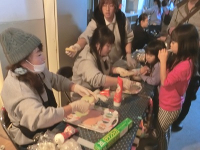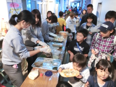 1階の廊下では、教職員が担当した「先生のタコセン」【写真左】や「ミルクせんべい「【写真右】は、途中で数が足りなくなって、買い出しに行きました。