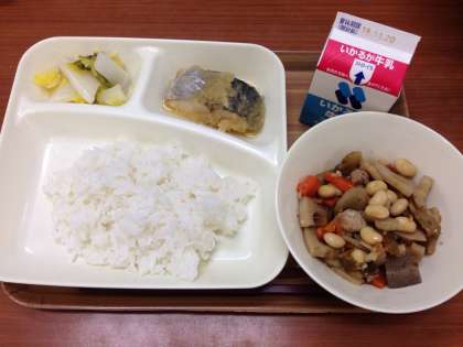 11月14日(水)のこんだては、「さごしのおろしじょうゆかけ、五目豆、はくさいの甘酢あえ、米飯、牛乳」です。