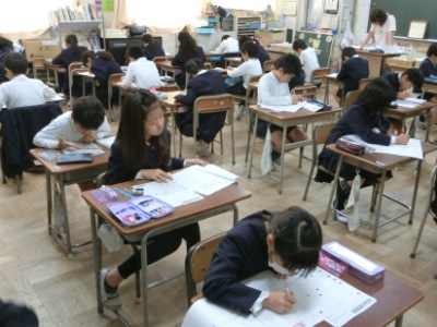 3年生は算数から実施しましたが、初めてのテストで少し緊張気味でした。先生からの注意を聞いた後、真剣に問題に挑んでいました。調査結果等については、2月頃にお知らせする予定です。