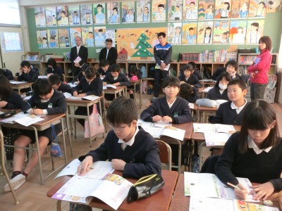 12月12日(水)4限、6年生は道徳の授業で「門番のマルコ」を学習しました。小学校では今年度から「道徳」は特別の教科になったので、小中連携として、長吉西中学校から3人の先生方が来られて参観されました。