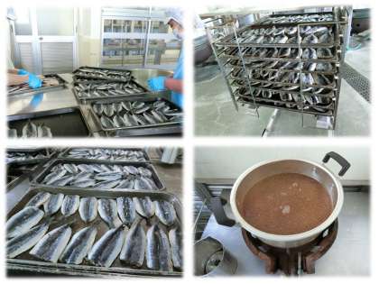 節分には厄を払うために、鬼の嫌いないわしの頭をヒイラギに刺して戸口に立てておくという風習があります。いわしのしょうがじょうゆかけは、開きのいわしを焼き物機で焼いて、砂糖、みりん、しょうゆ、しょうがを合わせたタレをかけています。