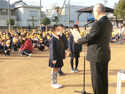 2月11日(火)始業前、今日の児童朝会では、26名の児童に「MOA美術館平野区児童作品展」などの賞状伝達を行いました。その後、校長先生から「春を待つ木々」について、お話がありました。