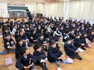 2月18日(月)3限、2年生は多目的室で「多文化共生・国際理解」の授業があり、中国のあいさつや文化、遊びについて学習をしました。