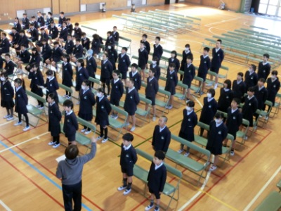 3月5日(火)3限、いよいよ本格的に卒業式の練習が始まりました。先週までにせり台やひな壇を設置し、年に1回のピアノ調律も行いました。