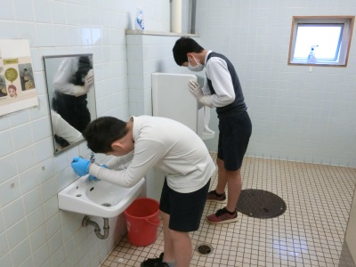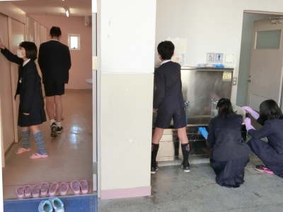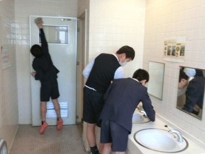 3月8日(金)6限、「クリーン週間」の最終日、6年生は各校舎のトイレと手洗い場の清掃を行いました。