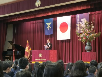 4月3日(水)10時、長吉西中学校の「平成31年度入学式」が行われました。6クラス240名の中学校1年生が入場しました。