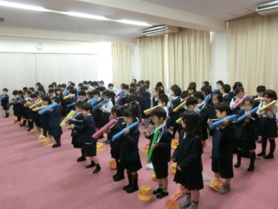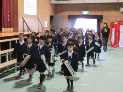 4月4日(木)10時、新2年生の85名は、第2音楽室に集合しました。新1年生の前で披露する「歓迎のことば」の最終練習を行いました。その後、体育館に移動しリハーサルを行いました。とても上手にできました。
